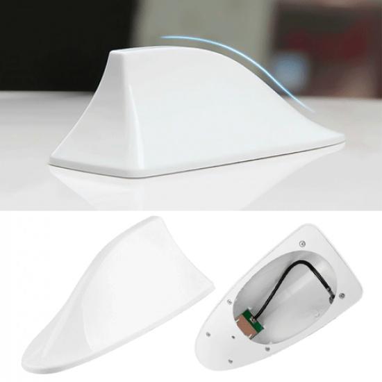 White Pearl Shark Fin Roof Antenna Aerial FM/AM Radio Signal Decor Universal EXV