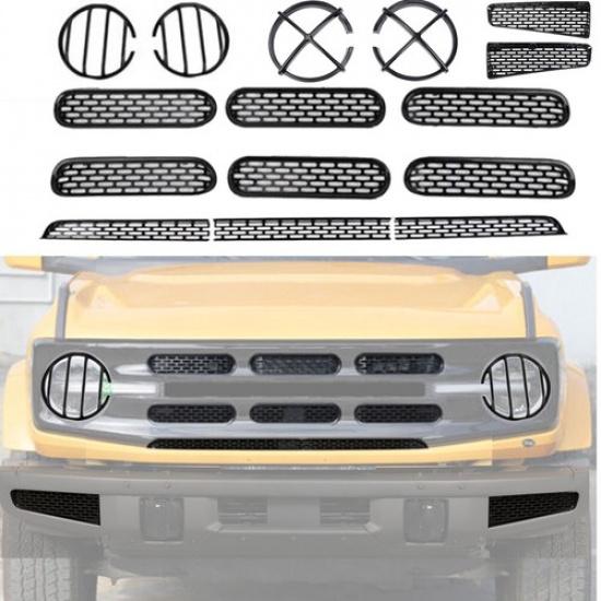 Front Grille Erts Mesh Headlight Trim Decor Cover Kit For + Ford Bronco