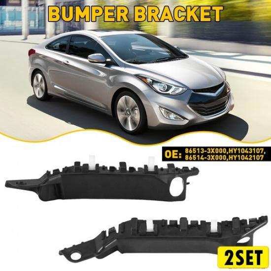 Superseded Part Number: 865143X000, HY1043107, 865133X000, HY1042107, 2016 2015 2014 2013 2012 2011, Hyundai, Elantra Coupe Front, Driver Left and Passenger Right Side, Sedan, 4Cyl, 1.8L 2.0L, GL L GLS Limited Sport SE Value Edition GS, Bumper Brackets Retainer Mounting Braces Pair Set