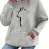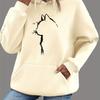 Women's Autumn and Winter Warm, Loose, Casual, Personalized Cat Pattern Printed Velvet Long Sleeved Hooded Sweatshirt