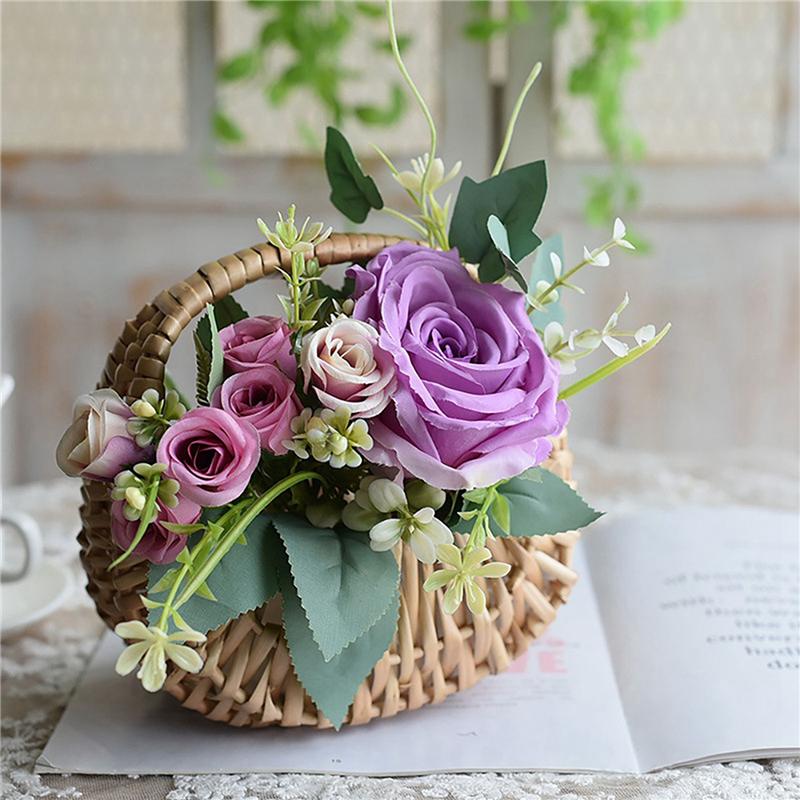 ABFS 8 Pcs Hand-Held Flower Arrangement Basket Hand-Woven Creative Flower Pot Storage Basket Flower Girl Basket Home Decor