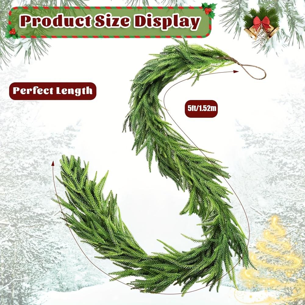 Real Touch Norfolk Pine Garland with Green Vine - Lifelike Artificial Greenery for Christmas, for Table, Mantle,Wall Decor,Decor
