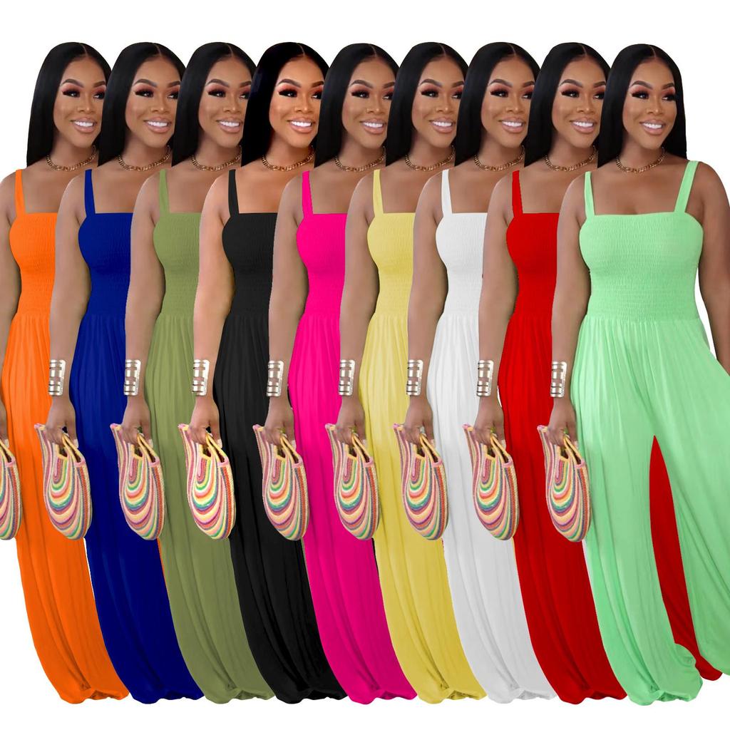 Embrace effortless style with this solid color wide-leg suspender jumpsuit, designed for the modern woman. Crafted from high-quality polyester, this jumpsuit is both comfortable and durable, making it perfect for any occasion. Featuring a high waistline and pleated detailing, it offers a chic and sophisticated look. Ideal for both European and American fashion sensibilities, this jumpsuit is a versatile addition to any wardrobe.