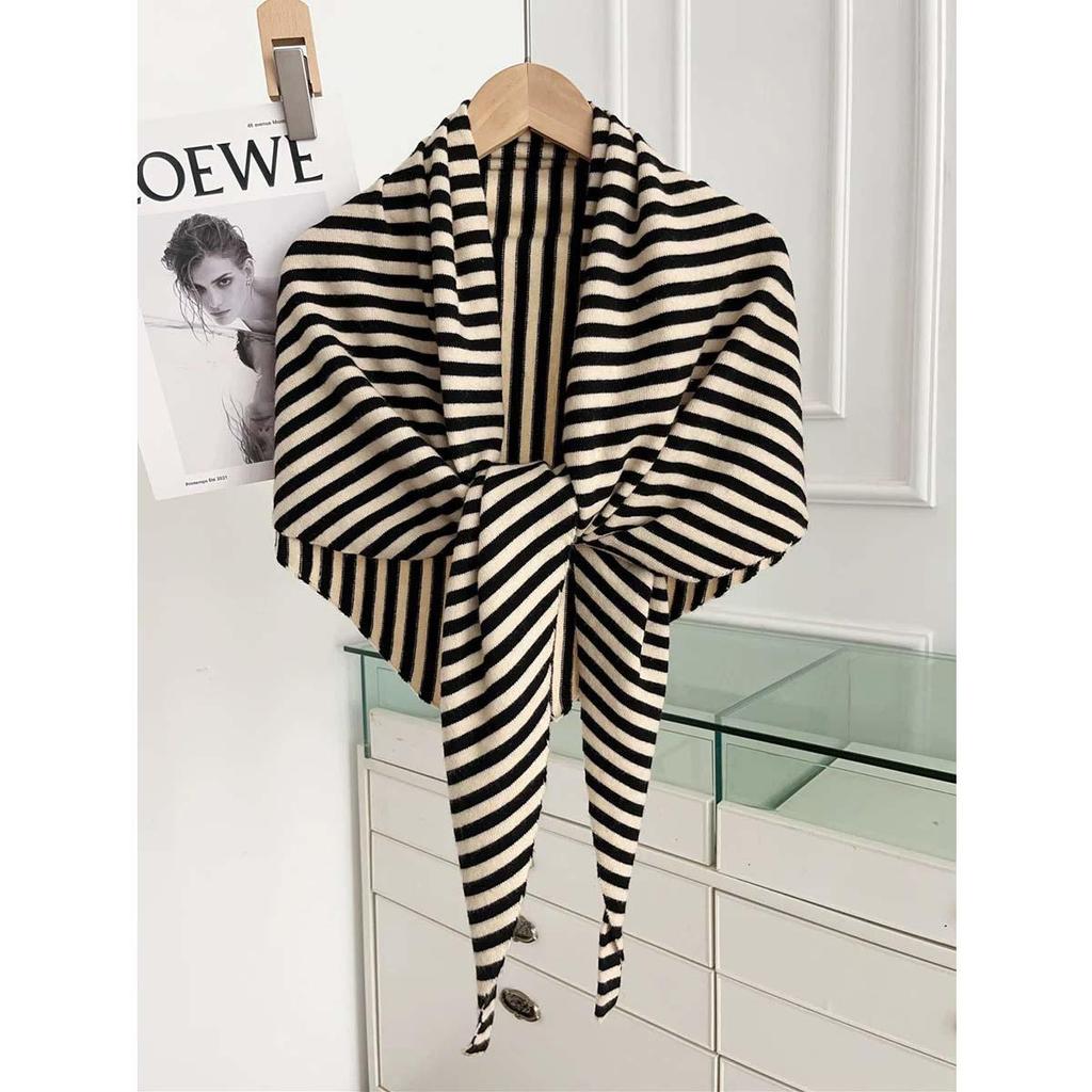 2025 Wool Blend Striped Triangle Shawl Women's Warm Thick Knitted Outerwear