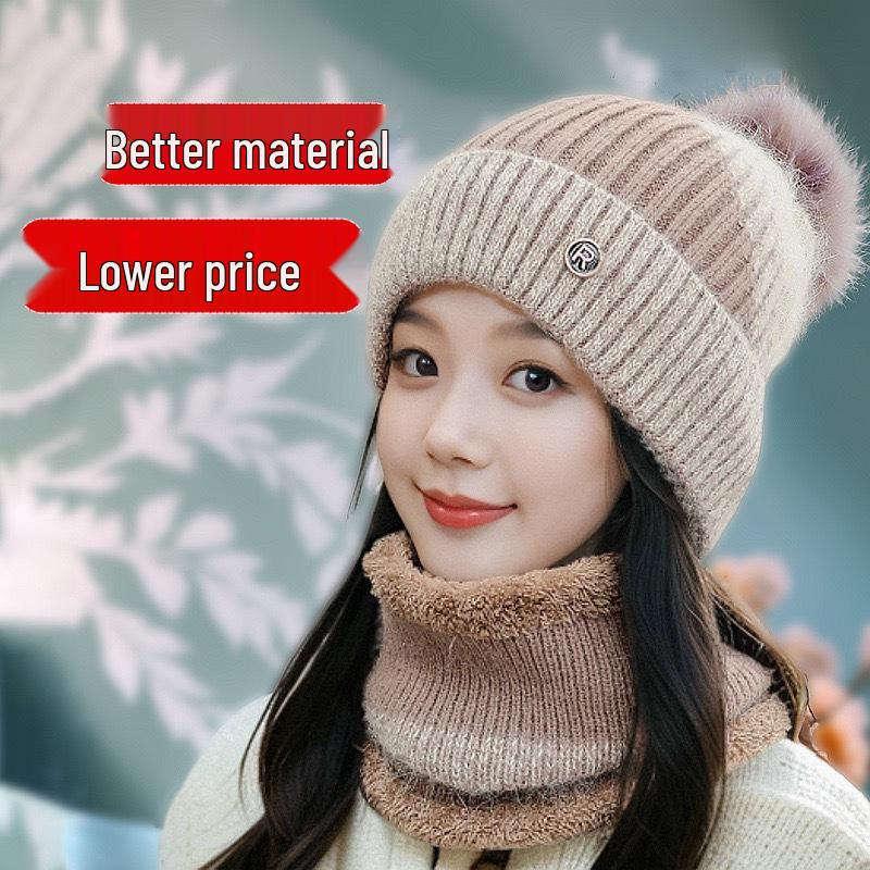 Cozy Fleece-Lined Pom-Pom Hat and Scarf Set for Maternity Cycling
