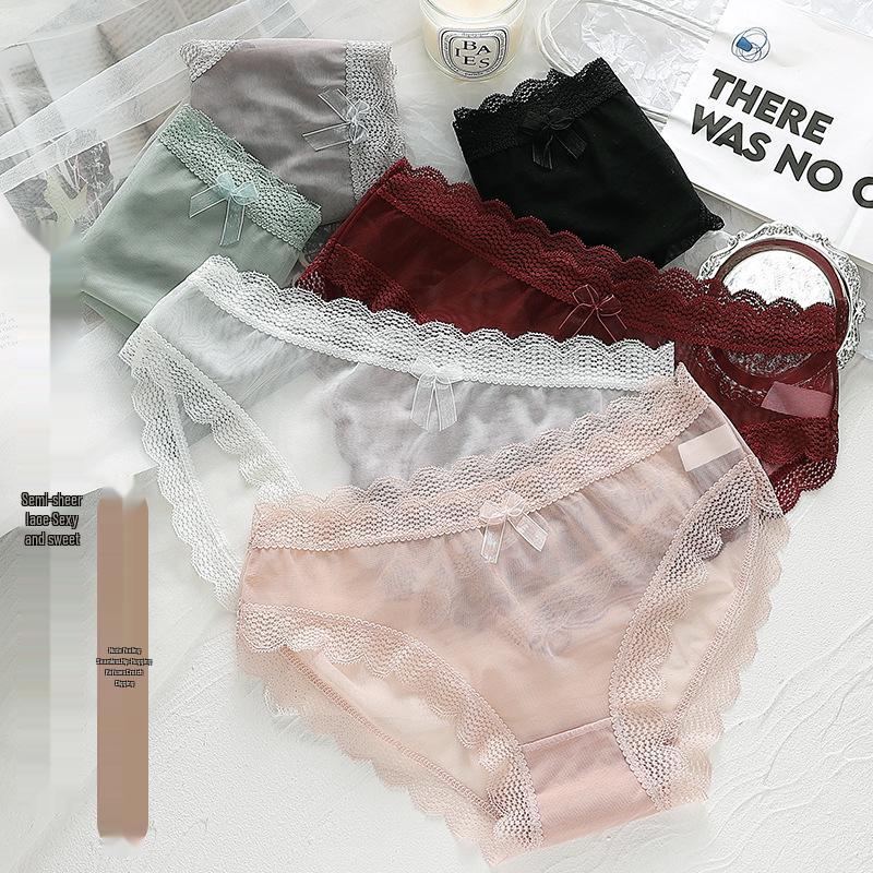 Lace Edge Women's Seamless Sexy Mesh Panties with Bowknot