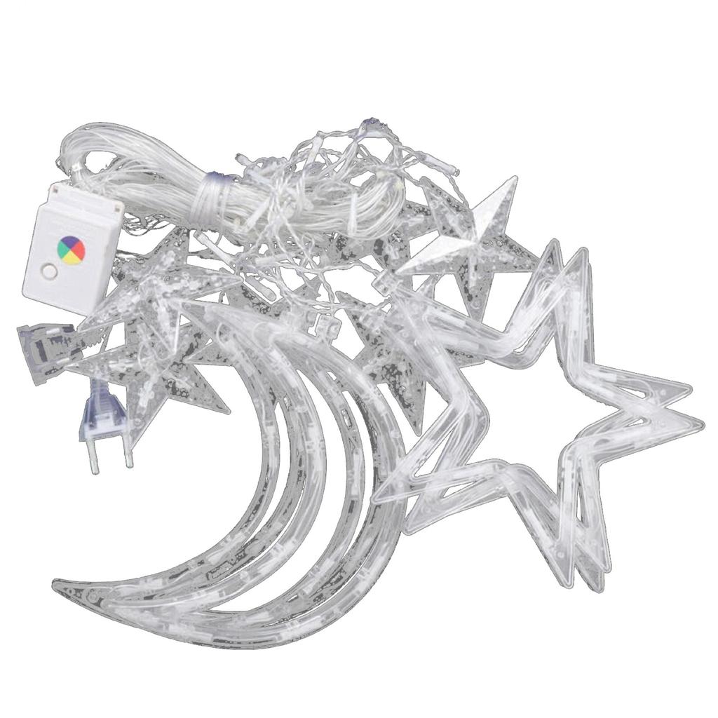 Star Moon Light LED Colored Light Outdoor Camping Light String Layout Festival Atmosphere Sky Curtain Decorative Light Attention: Due to various factors such as monitor brightness and lighting brightness, the actual color of the product may differ slightly from the images displayed the website. The diameter of the moon ornament is 7.1 inches, the diameter of the star is 7.9 inches, and the diameter of the minor star is 3.9 inches. The entire cable length is 13.12 inches. Wonderful decorations for Christmas parties, Valentine's Day, birthday parties, weddings, families, holidays, restaurants, hotels, commercial buildings, and shopping centers Easy to install, with 3 moon decorations and 6 big and 6 small stars, you can easily hang them doors, , Christmas trees, and walls, bringing a atmosphere Combination, , Slow Ball, /Flash, Slow Fade, Flash/Flash, and Always Safety curtain light, IP44 certification, suitable for outdoor lighting decoration. It saves electricity, like the stars and moon at night, with a power of 0.05W, which means it saves 90% of energy Specifications: Type: LED light string Optional LED color: warm /multi color Cable color: transparent Material: ABScopper wire Plug cable length (including controller): 1.5m/4.92ft Number of LEDs: 138 LEDs, 12 pendants (0.35m-1.0m high) Plug type: European plug/American plug Volume: AC220V Power: 0.05W : IP44 (The lamp is and can be used outdoors, but the controller is not and needs .). Packaging content: 1 * Star Moon Lamp