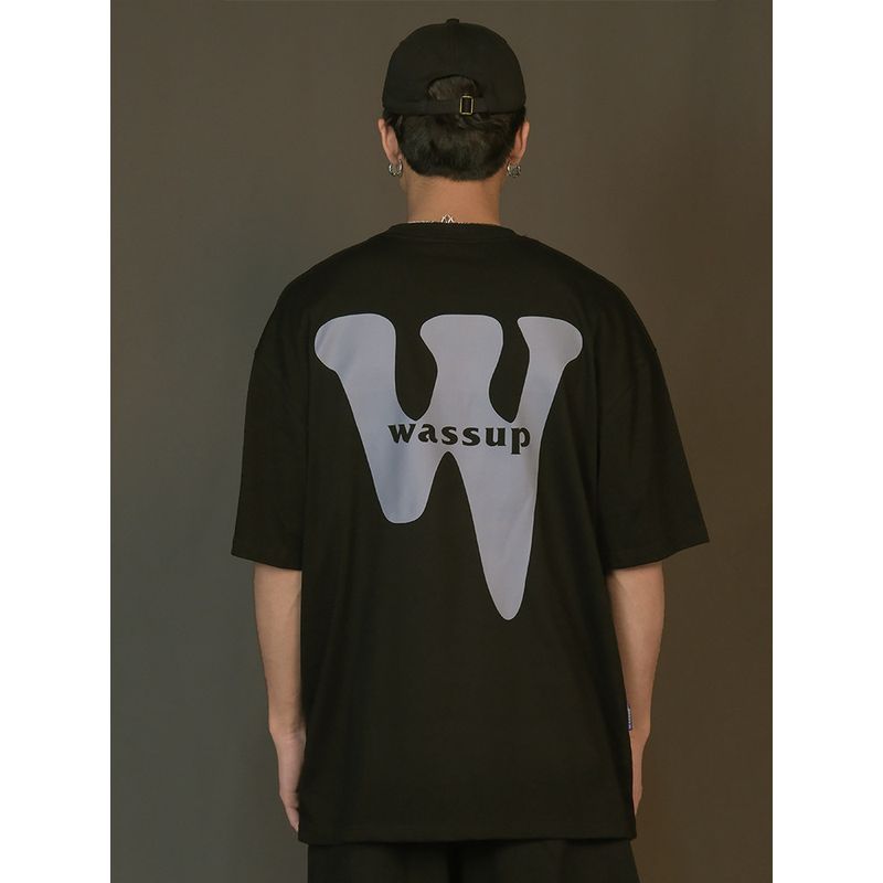 Wassup Heods Short-Sleeved T-Shirt with Round Neck, Summer Trendy Printed Pure Cotton Heavyweight American Casual Loose Fit for Men and Women