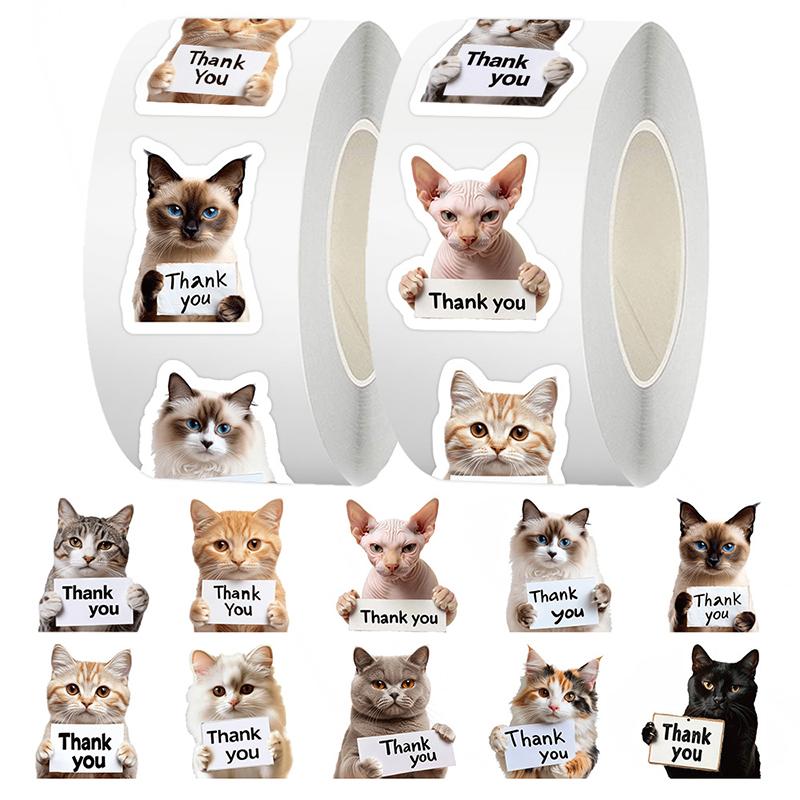 Adorable Puppy Cat Design 500Pcs Thank You Stickers, Ideal for Supporting Small Businesses, Envelope Packaging Seals