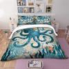 3D Starfish,Seaweed Duvet Cover+pillow Case Print Octopus Winter Home Bedding Set King Size Breathable Quilt Cover Set Blue AQ