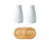 2 PCS Modern White Salt & Pepper Shakers,for Farmhouse Kitchen Table Décor, Ceramic Salt and Pepper Shakers Set with Bamboo Tray
