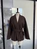 Spring Autumn Women's Coat Wool Brown Short Loose Tie Waist Overcoat for Women