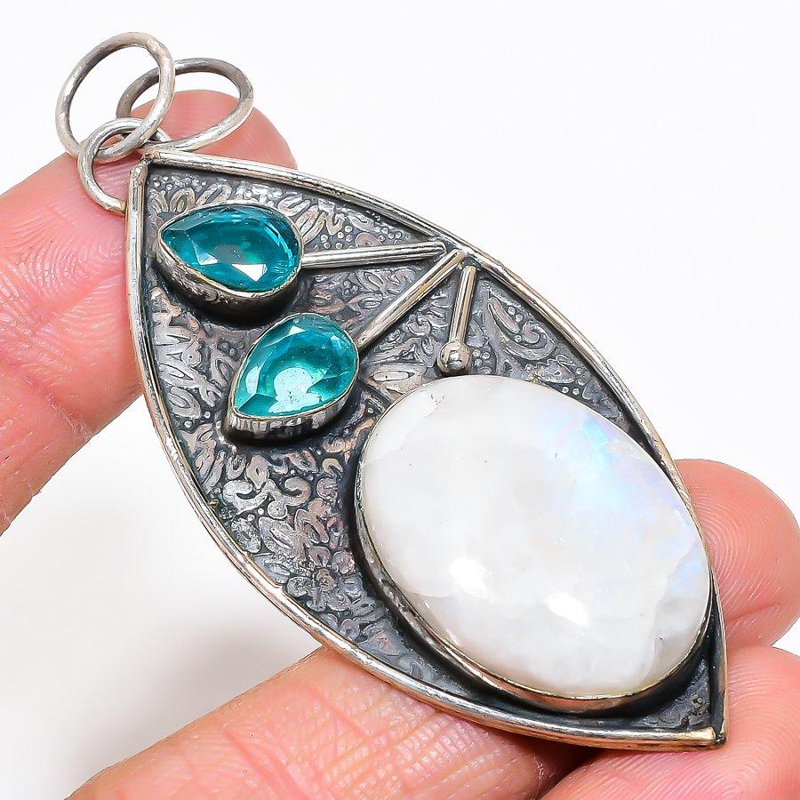 Natural Rainbow Moonstone 925 Sterling Silver Jewelry Pendant 2.99" AP-14040