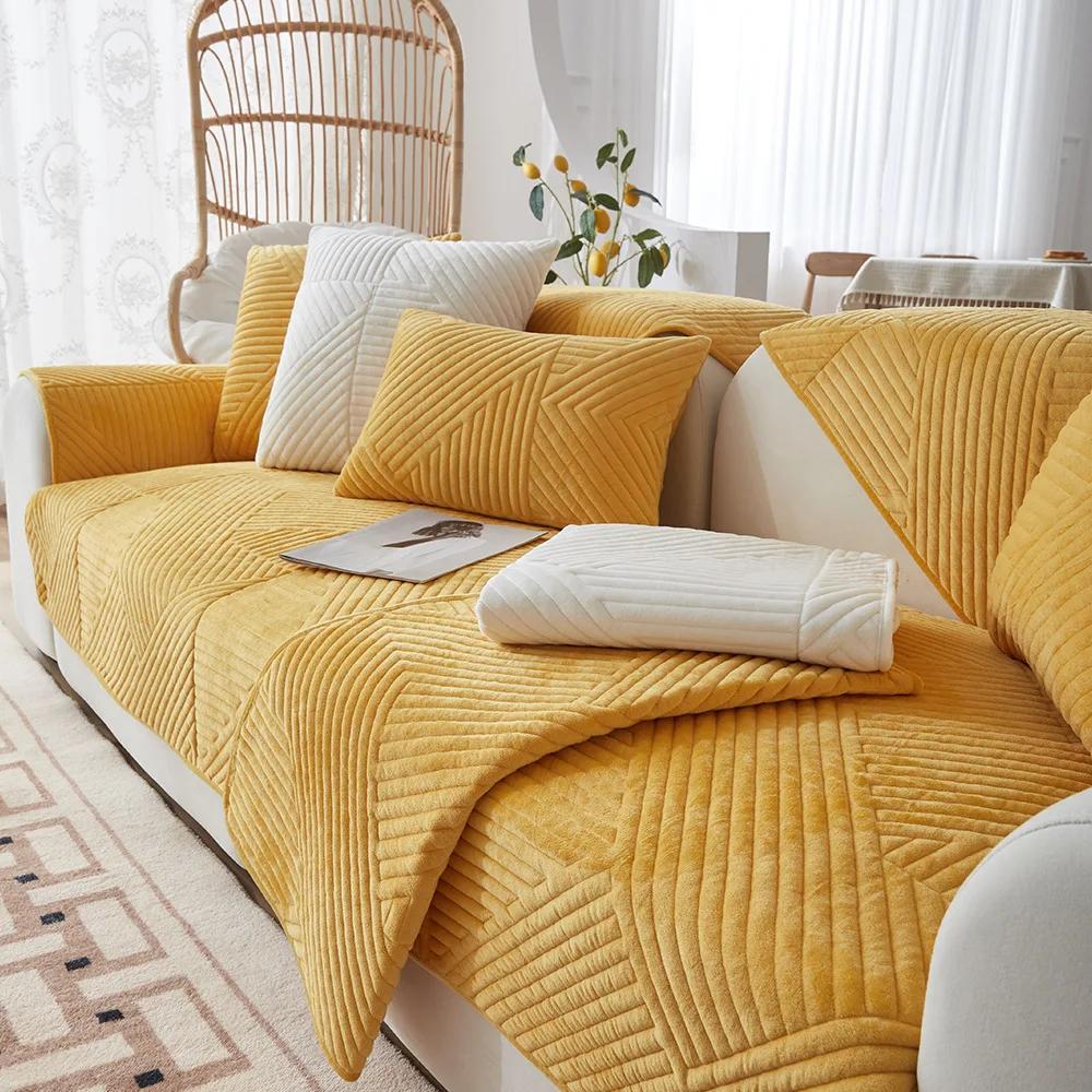 Solid Plush Sofa Covers Stripe Sofa Cushion Armchair Towel Furniture Seat Cover Thick Sofa Slipcover for Living Room Daybed