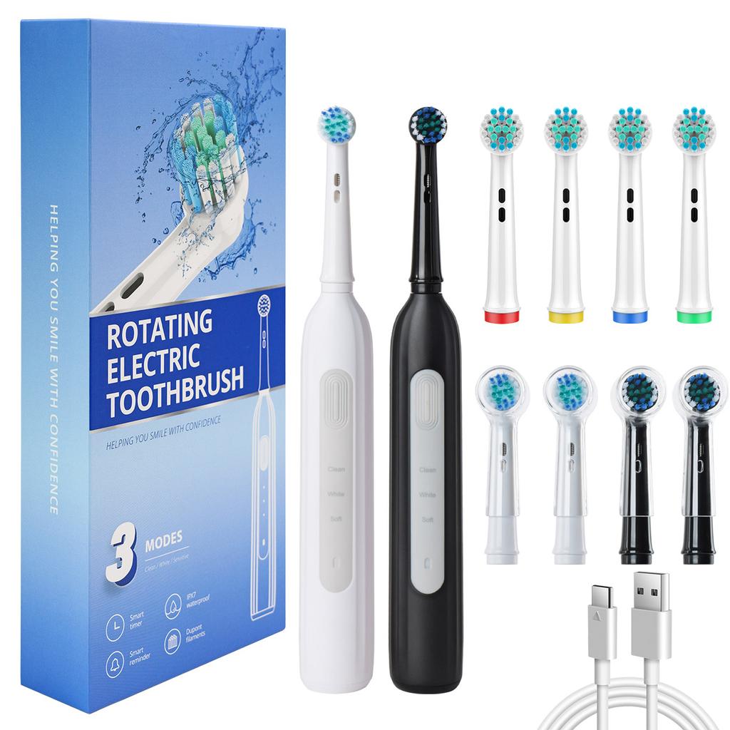 Rotating Electric Toothbrush Suitable for Adults, Equipped with 6 Brush Heads, Type-c Charging, 3-speed 2-minute Timed Zoning