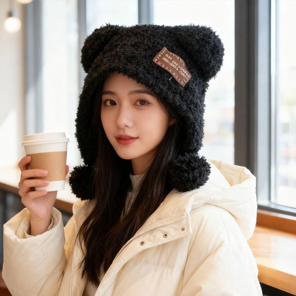 Bear Ears Little Bear Ears Hat Fluffy Winter Plush Hat Leisure Balaclava Hat Female/Girls
