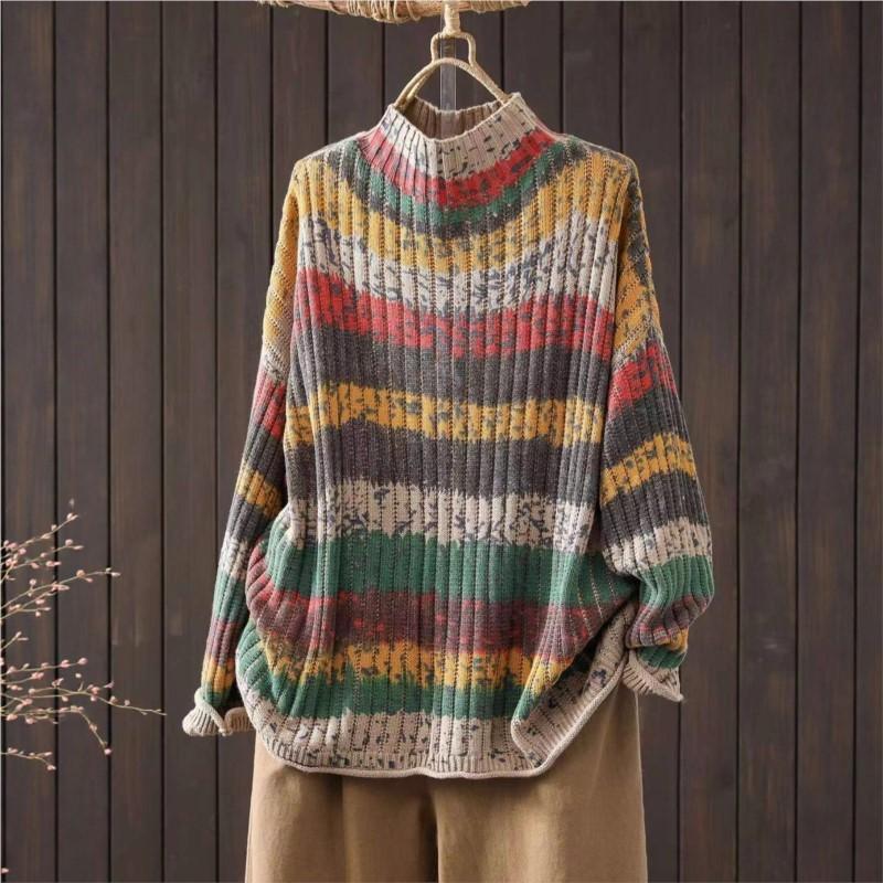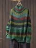 Johnature Women Vintage Striped Pullover Sweaters Mock Neck Long Sleeve Spring Long Sleeve Casual Sweaters