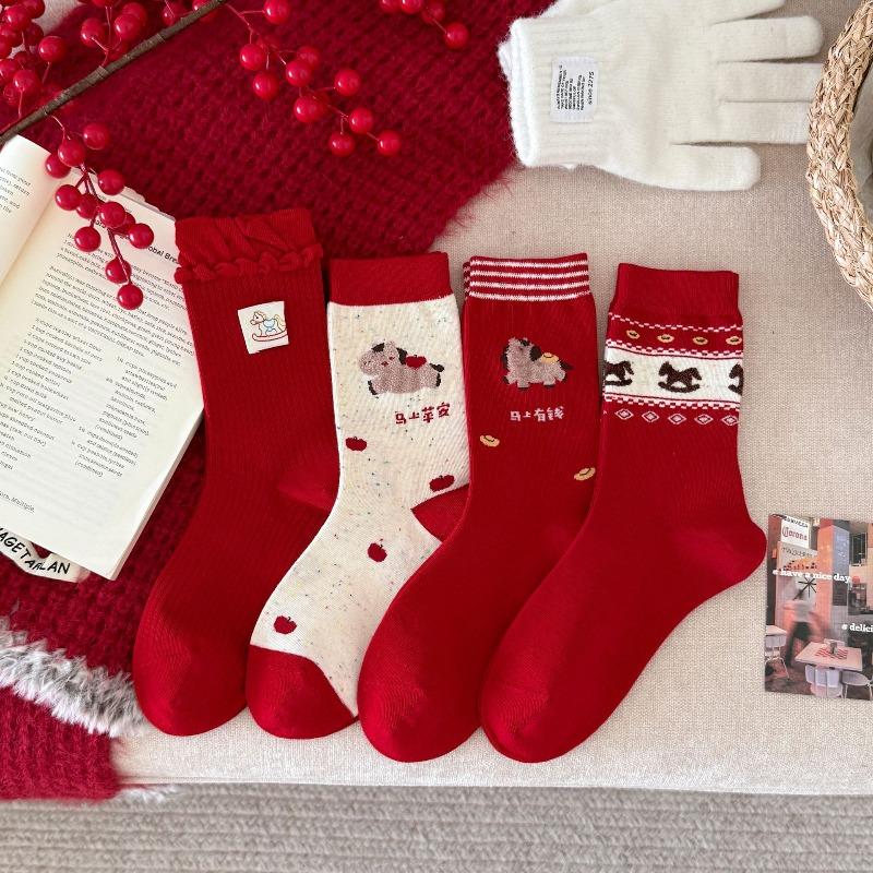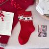 Autumn and Winter Red Socks, Pure Cotton Fair Island Mid-calf Cartoon Cute Pile-up Sock Girl