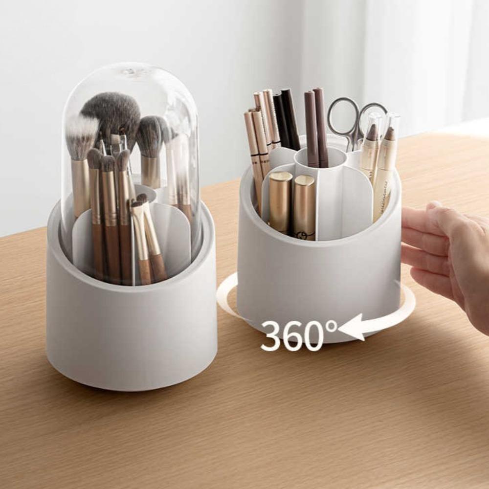 Rotating Makeup Brush Storage Box Portable Multifunction Dust Proof Desktop Organizer Lipstick Shadow Cosmetic Holder