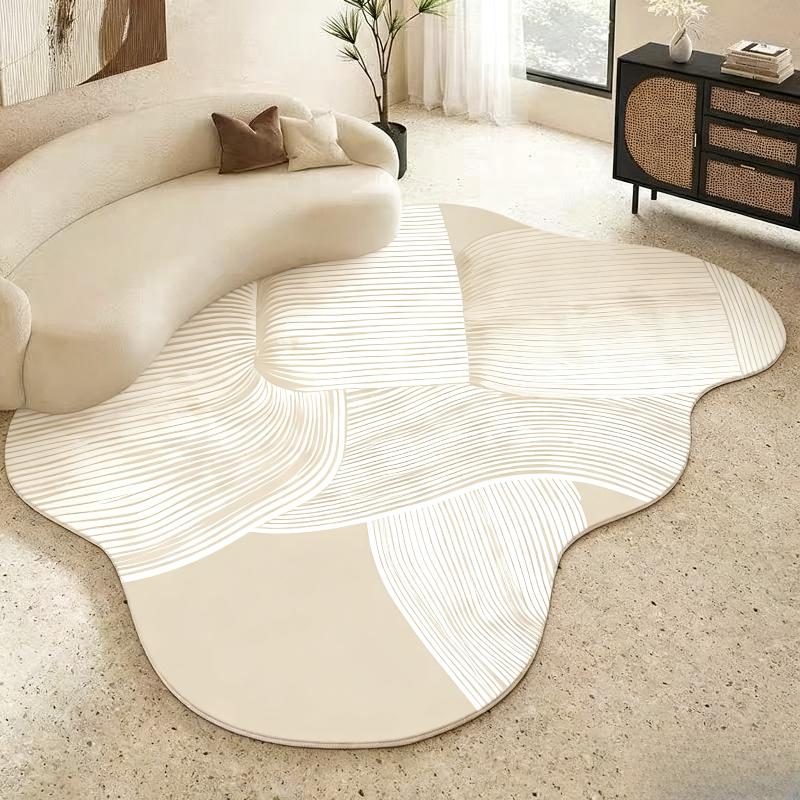 Irregular Shape Bedroom Decor Line Carpet Home Thick Plush Rug Cream Style Carpets for Living Room Fluffy Soft Lounge Floor Mat