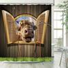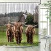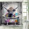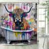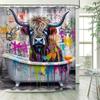 Funny Highland Cow Shower Curtains Farm Cattle Colourful Graffiti Art Bathing Animal Bath Curtain Fabric Bathroom Decor Hooks