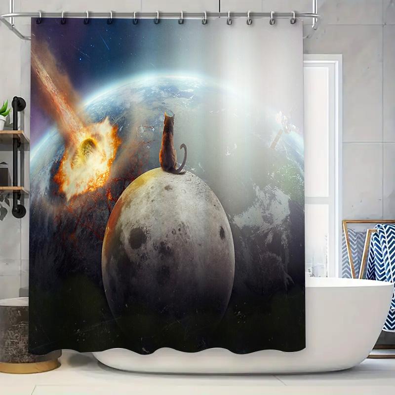 Galaxy Cat Space Bath Curtain Nebula Universe Home Decor Shower Curtain Moon Planet Room Divider Backdrop