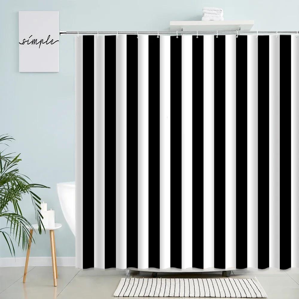 Black and White Striped Shower Curtain Creative Design Geometric Bath Curtains Modern Minimalist Fabric Bathroom Decor Set Hooks