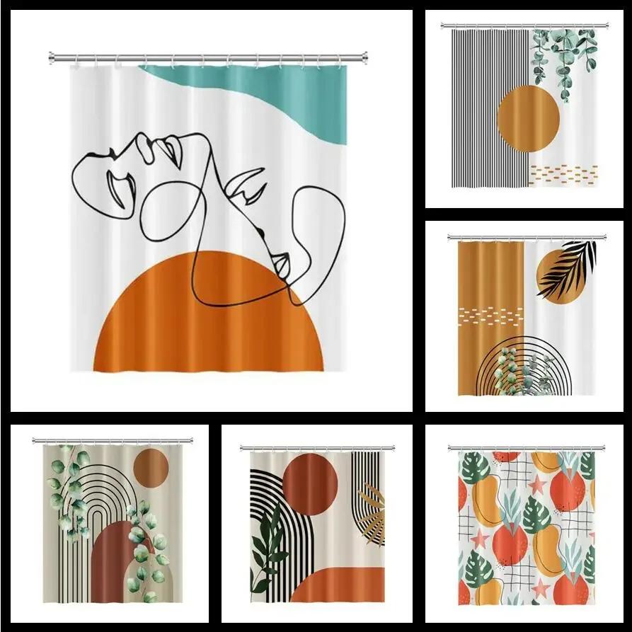 Nordic Wind Abstract Art Boho Shower Curtain Waterproof Polyester Bath Curtain Morandi Color Block Curtains For Bathroom Decor