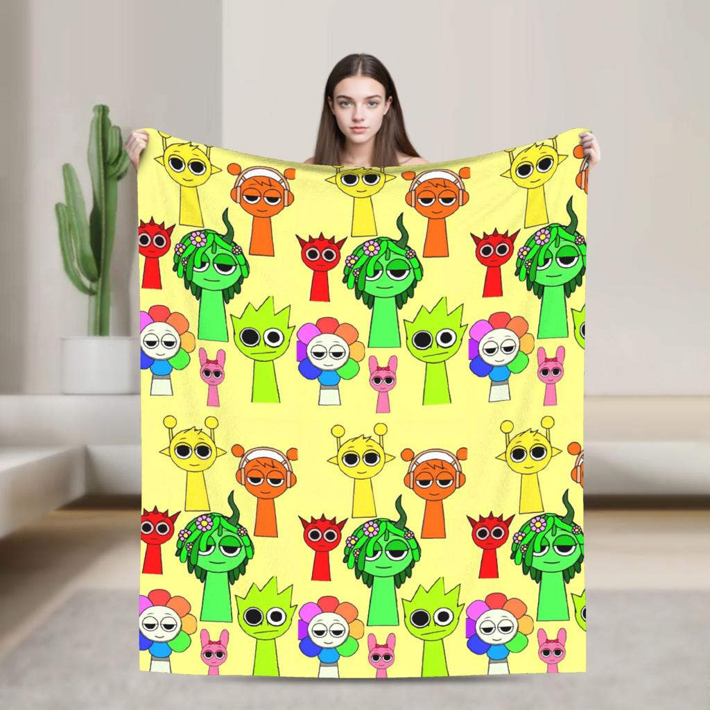 Sprunki Characters Game Velvet Throw Blanket Blankets for Bed Outdoor Warm Quilt