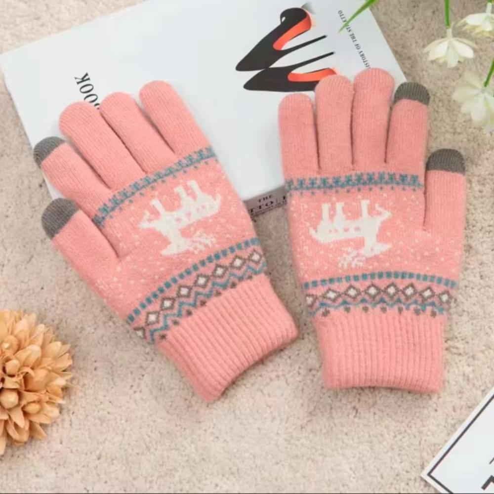 Touch Screen Winter Knitted Gloves Knitted Deer Full Finger Mittens Durable Riding Gloves Outdoor