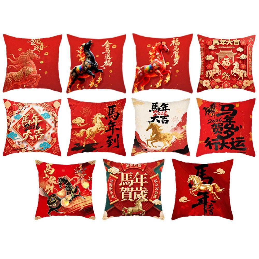 New Year of the Horse Spring Festival Cushion Cover Pillow Core Protection Removable Cushion Slipcover Square Shape Pillowcase