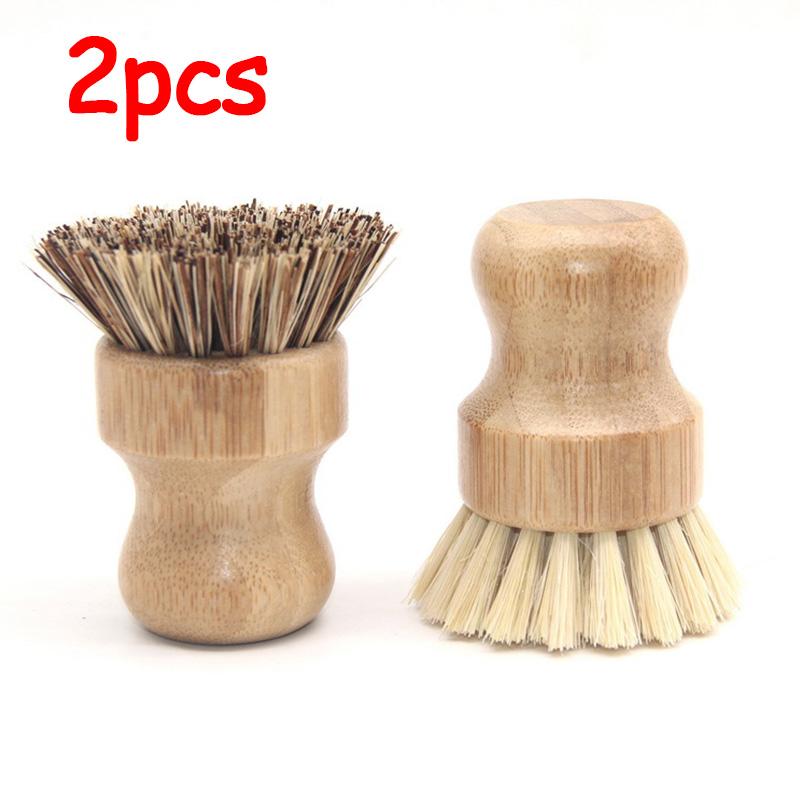 1/2Pcs Palm Pot Brush Bamboo Round Mini Natural Scrub Brush for Kitchen Dishwashing Pot Vegetable Cleaning Brush Wholesale