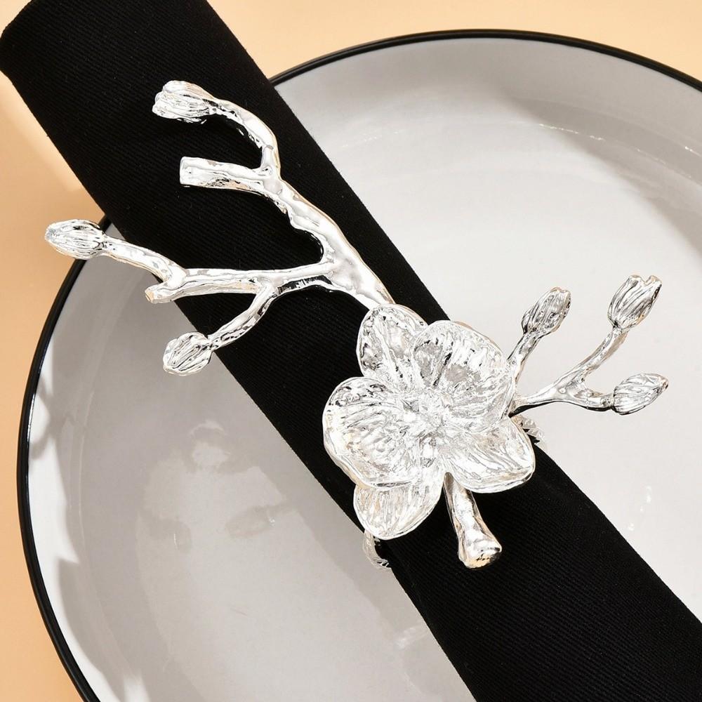 2PCS Gold/Silver Napkin Buckle Luxury Serviette Ring Plum Blossom Napkin Ring Banquet