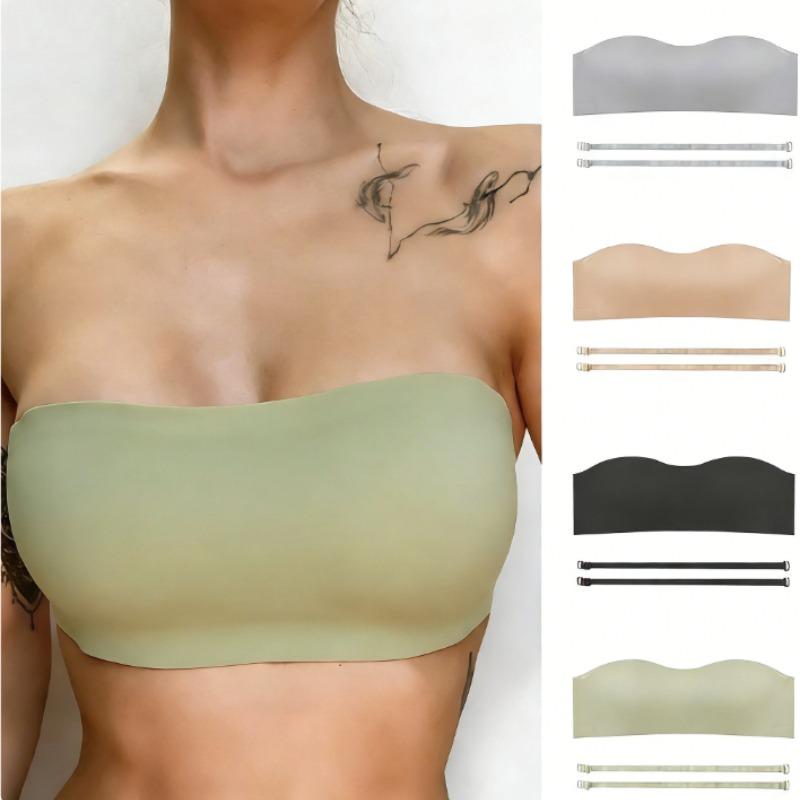 Detachable-Strap Seamless Strapless Wireless Convertible Bandeau Bra Non-Slip Sports Bra Push-Up Comfortable & Breathable Bra for Women