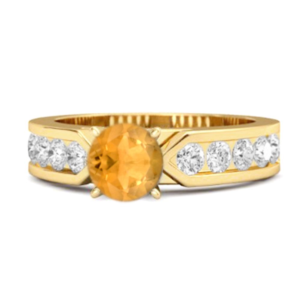 Citrine Round Solitaire Statement Ring - 925 Sterling Silver Gold Vermeil