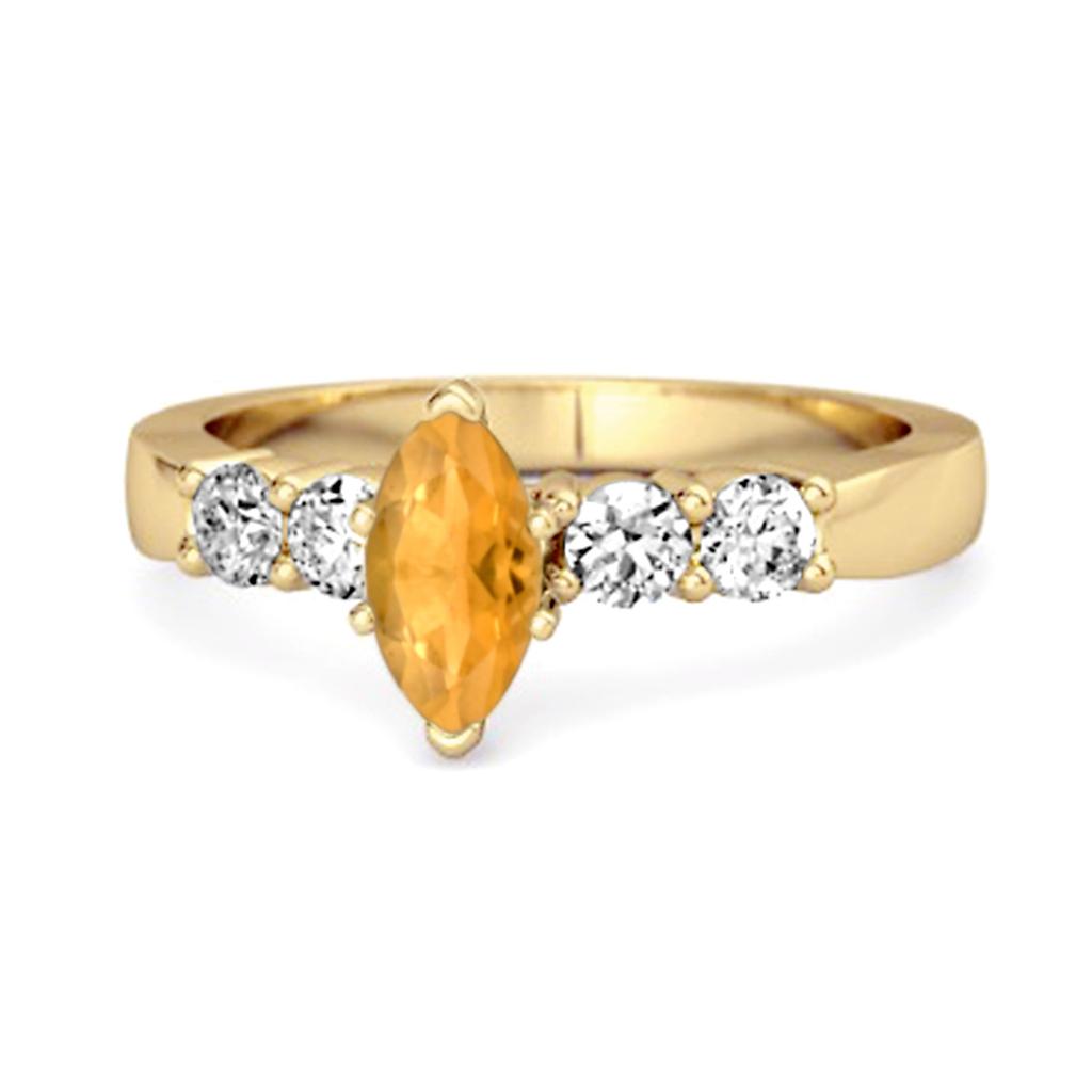 Citrine Tapered Five Stone Ring - 925 Sterling Silver Gold Vermeil