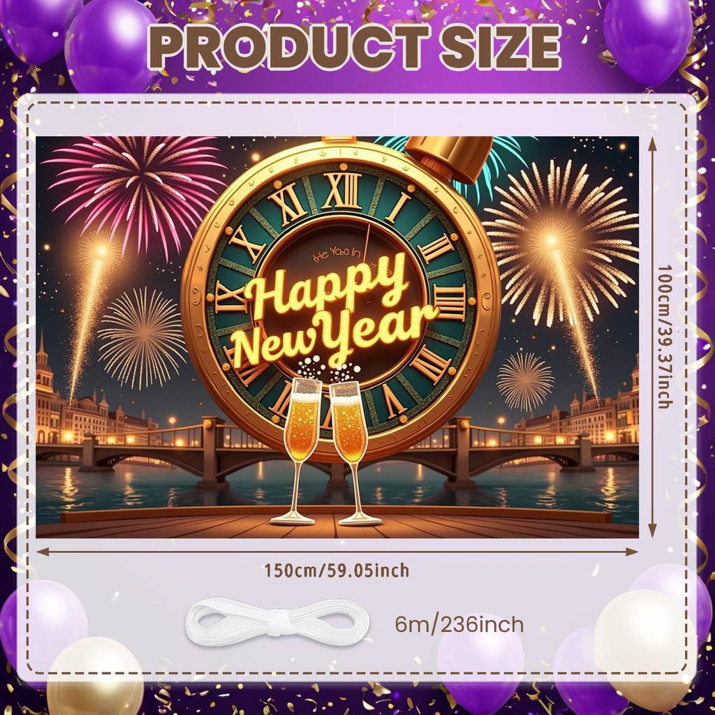 Event Banner Classic Clock Banner New Year Banner City Night View New Year Decoration For New Year Photoshoot Indoor