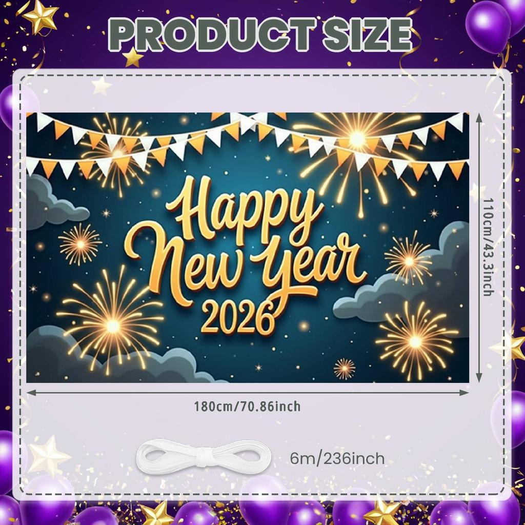 New Year Decor Banner Pattern Festive Display Holiday Background Gold Lettering Year Celebration Backdrop For New Year Eve