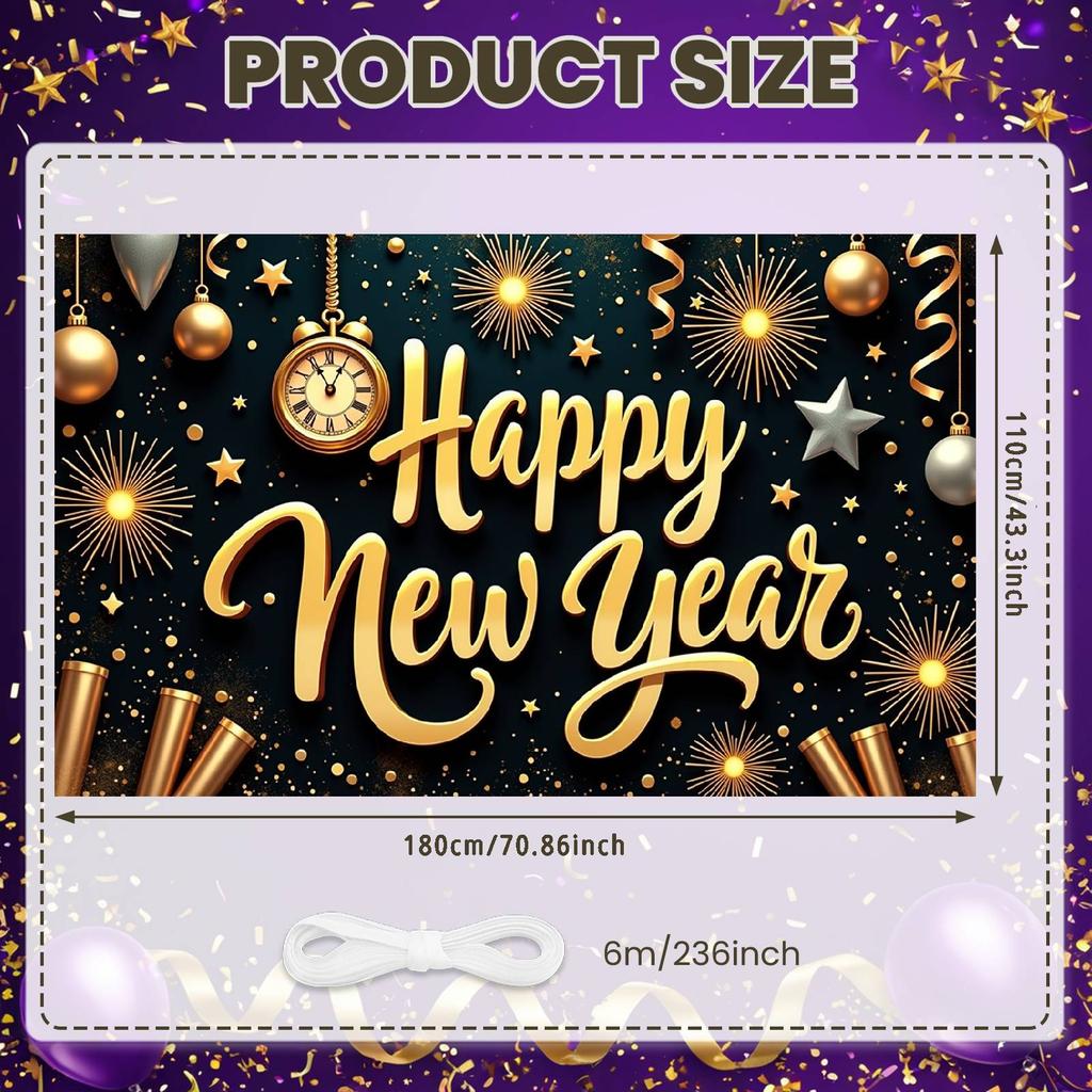 Event Banner Clock Decoration New Year Banner Festive Banner Metallic Color For Public Celebration Festive Gathering Home