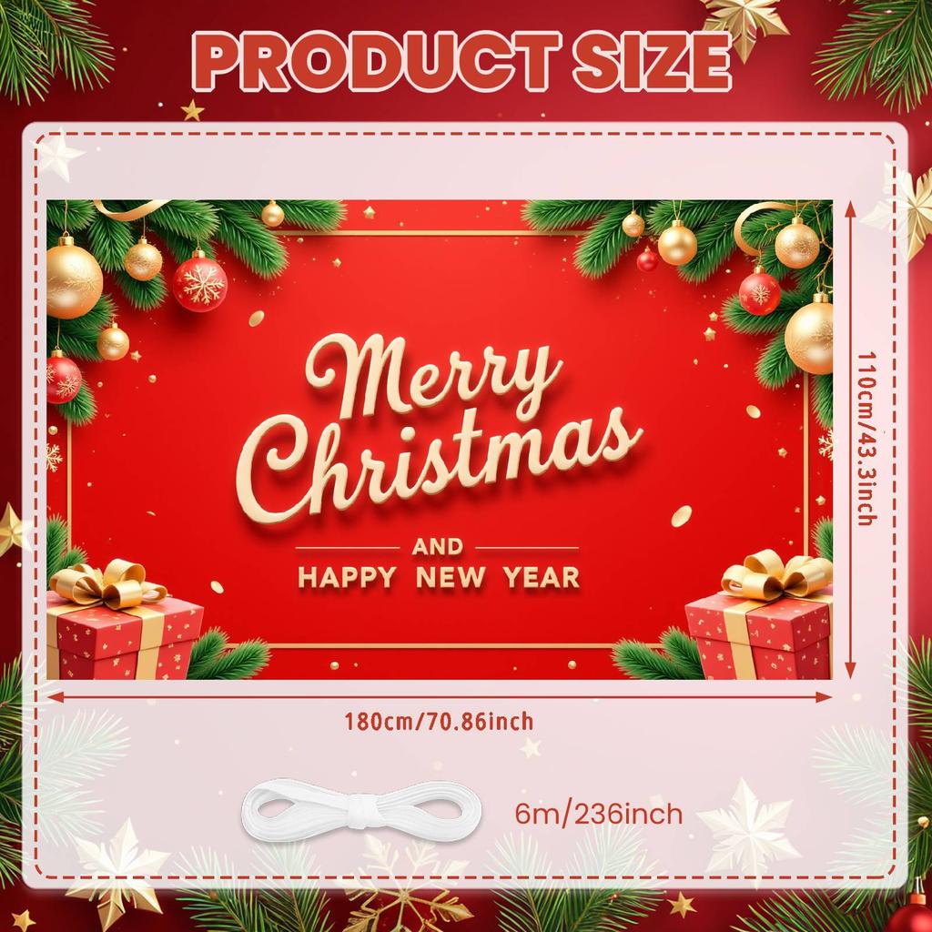 Merry Christmas Banner Gift Box Christmas Decoration Banner New Year Banner Decorative Border For Home Party Office Decoration