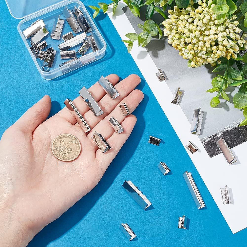 PH PandaHall 42pcs Crimp Fasteners 6 Sizes Ribbon Ends Platinum Leather Ribbon Crimps Brass Belt Buckle End Tip for Clothes DIY Leather Craft Belt