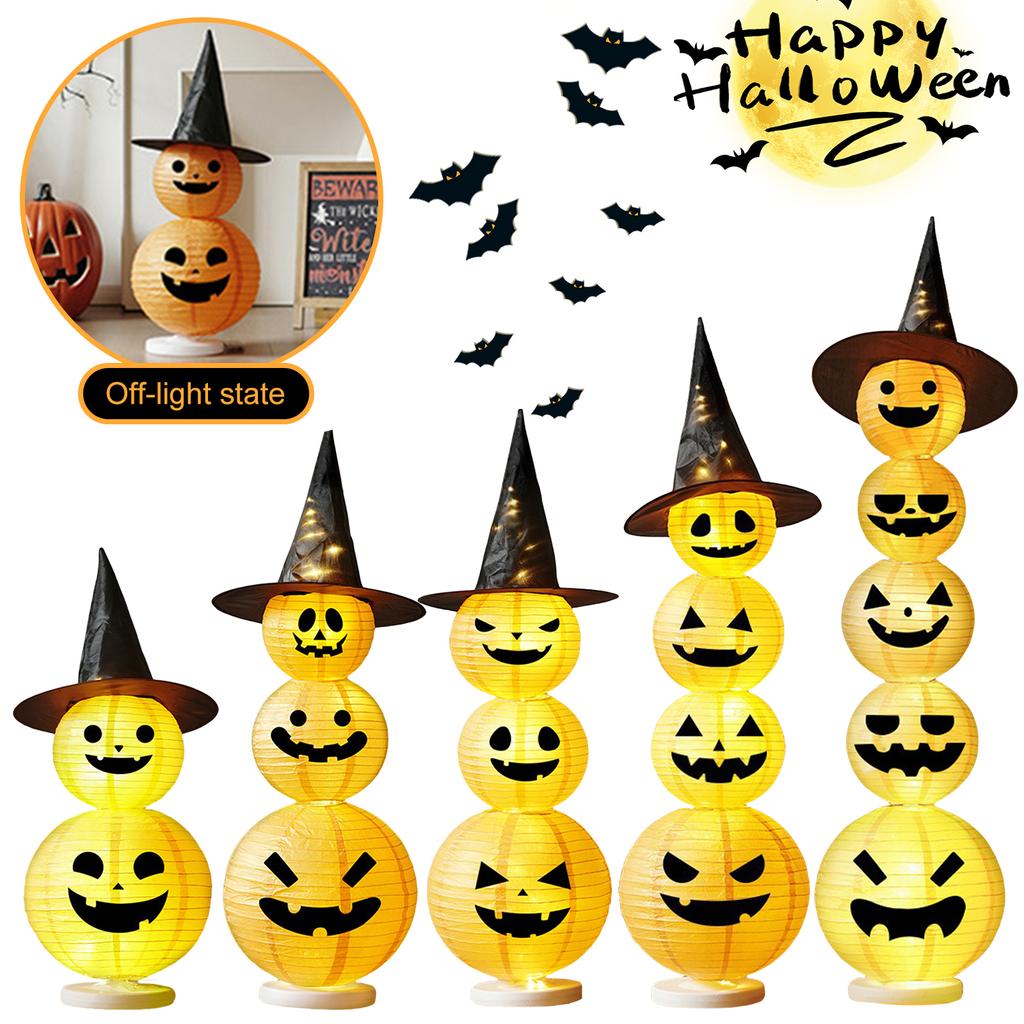 Halloween Decorative Pumpkin Paper Lantern W/ Witch Hat Halloween Pumpkin Light Jack-O-Lantern Pumpkin Light for Parties Outdoor