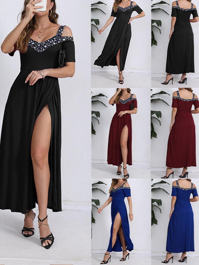 Summer New Women's Off-Shoulder Strap Fashion High-Slit Dress for Women