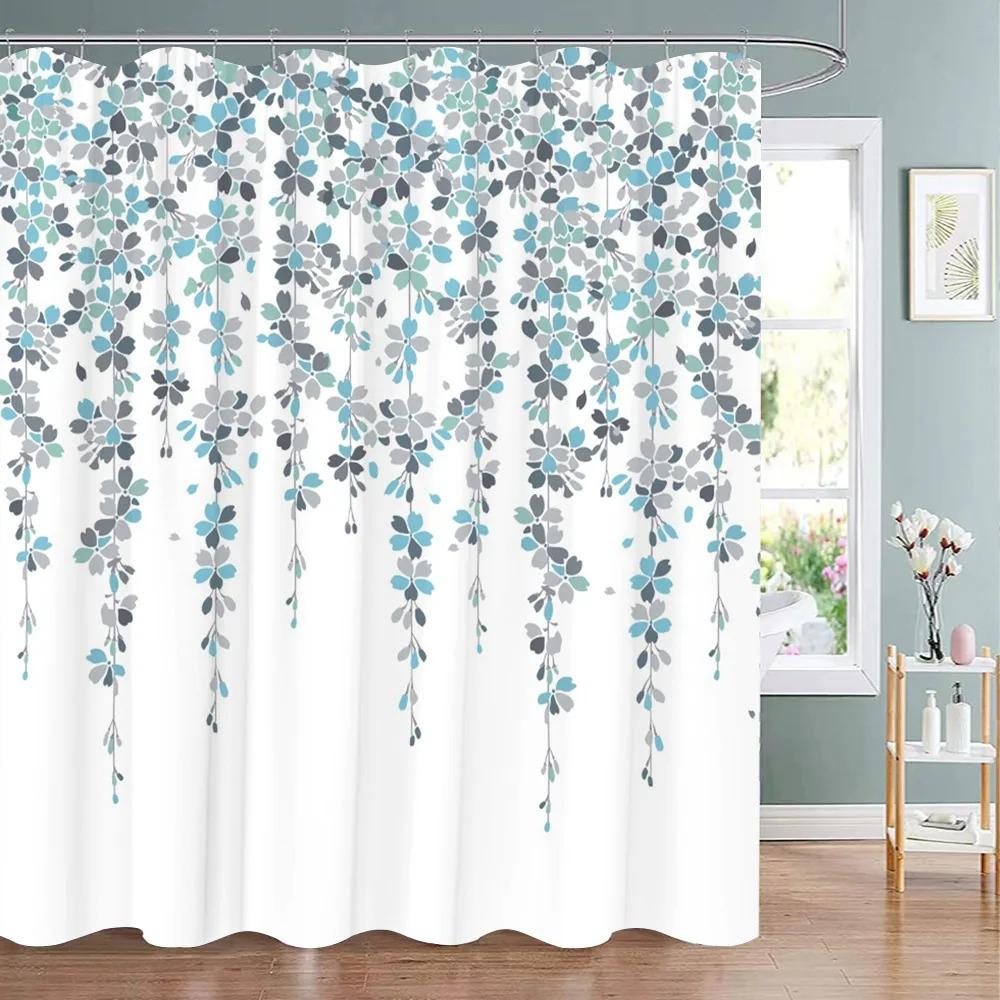 Green Eucalyptus Shower Curtain Watercolor Teal Plant Leaf Bathroom Shower Curtains Botanical Flower Floral Bathroom Decoration