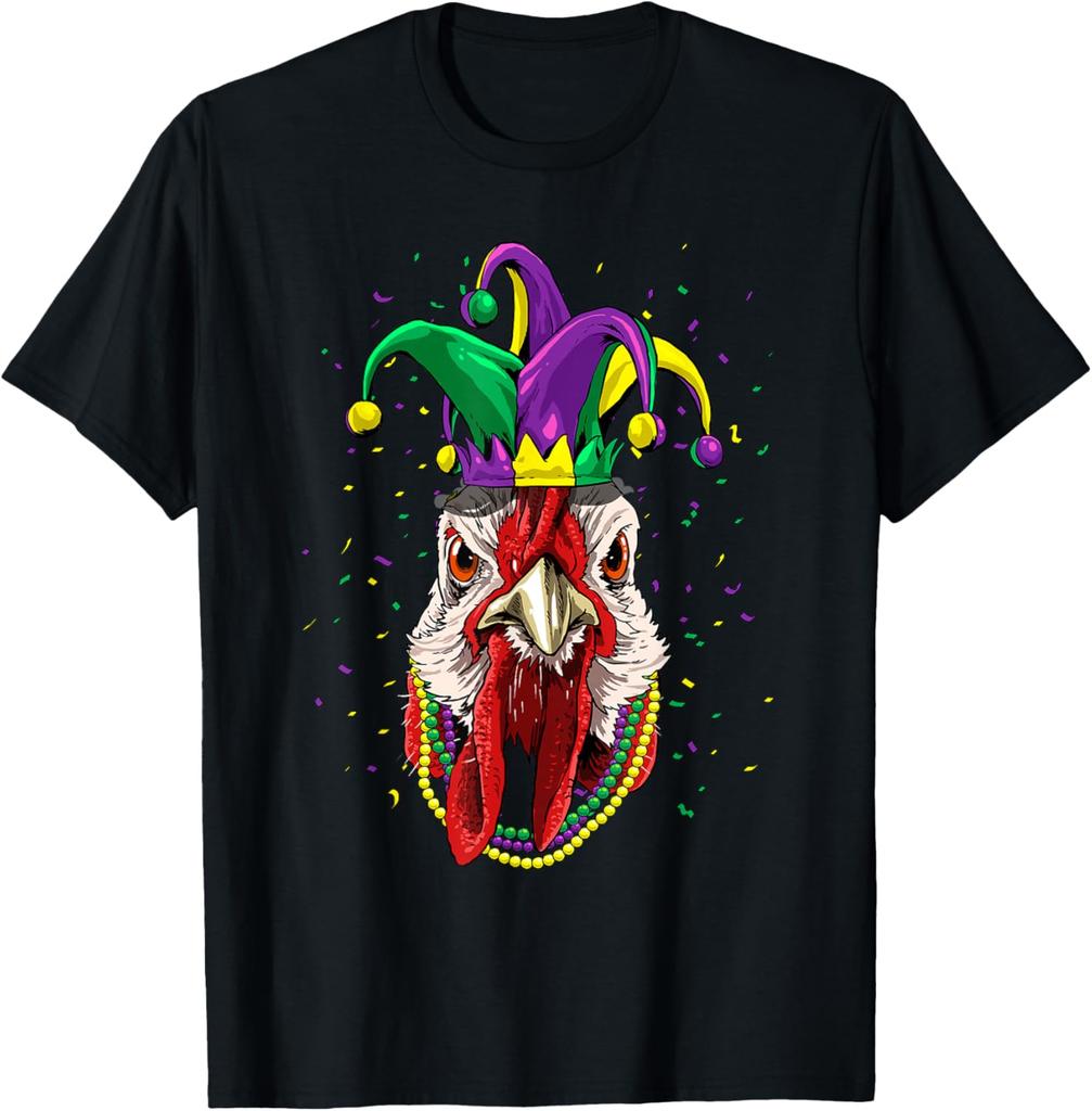 Turkey Mardi Gras T-Shirt Chicken Animal Lover Graphic Tee Men Casual Cotton