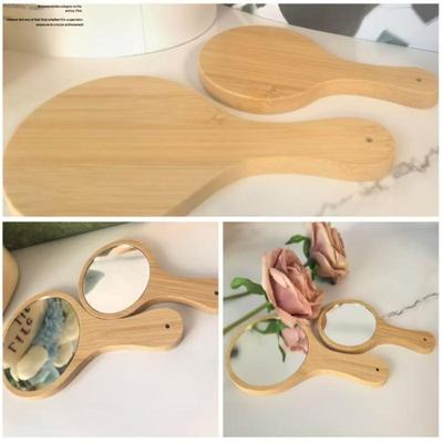 Handheld Wood Makeup Round Mirror Portable Wooden Handle Cosmetic Mirrors for Home Travel