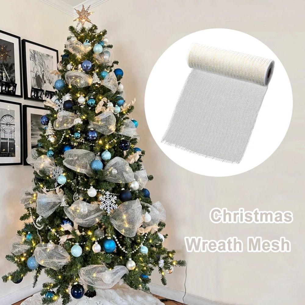 Shiny Christmas Decoration Mesh Ribbon DIY Craft Colorful Christmas Flower Wreath Mesh Handmade 26cm Xmas Tree Ribbon