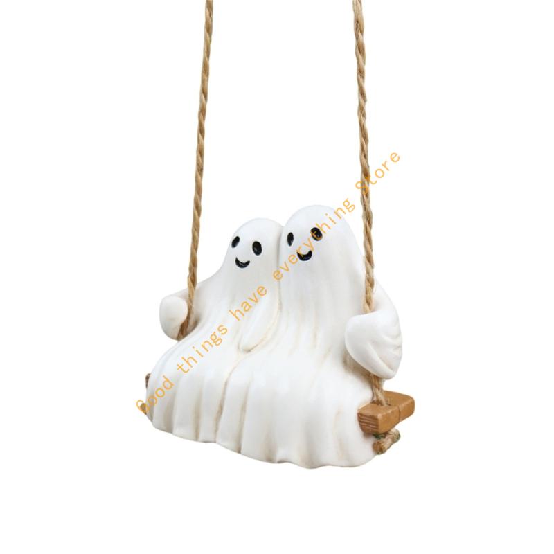 Romantics Ghostly Couple Swing Ornament Resins Halloween Garden Decors Indoor and Outdoor Weather Resistant Hanging Art 55KF