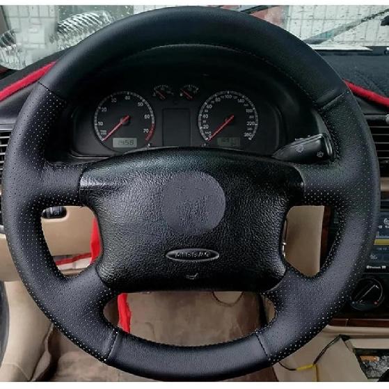 Black Leather Hand-Stitched Car Steering Wheel Cover, for VW Golf 4 MK4 1998-2004 Passat B5 1996-2005
