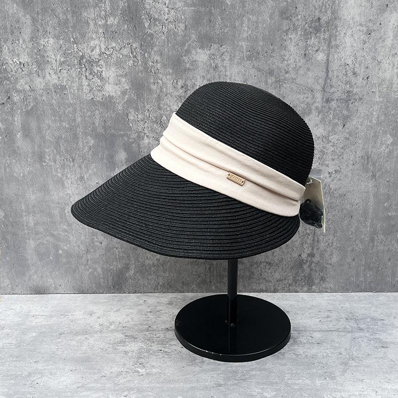 25 French Big-Brimmed Straw Hat Women'S Summer Beach Vacation Travel Sunscreen Sunshade Bucket Hat Foldable